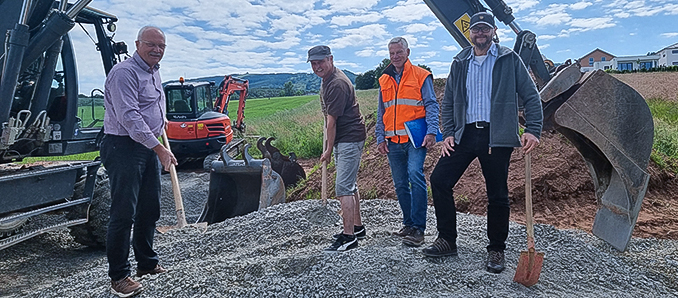 Vor einigen Tagen fand der Spatenstich für den Beginn der Erschließungsarbeiten statt, für die das heimische Unternehmen Fa. TIKA aus Poppenhausen nach Ausschreibung den Zuschlag erhielt. Bis Ende August sollen die Tiefbauarbeiten für Kanal, Oberflächenwasser, Wasserleitung, Strom und Breitband sowie für die Baustraße abgeschlossen sein. Anschließend können die Häuslebauer mit dem Bau ihres Eigenheims beginnen. +++ pm
