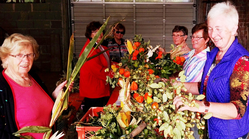 Der dekorierte Lebensthemenbaum schmückt jetzt einige Wochen um das Ernte-Dank-Fest die Ortsmitte zur Freude der Einheimischen und Gäste. Schließlich passen die Themen Landwirtschaft, Landfrauen und Ernte-Dank gut zusammen, meint Bürgermeister Manfred Helfrich, der sich auch in diesem Jahr wieder über die Unterstützung der Landfrauen freute. Folgende Landfrauen waren beim Schmücken aktiv: Maria Goldbach, Irmtraud Weigel, Elli Hahn, Maria Heller und Gertrud Zentgraf. Der Gemeindevorstand dankt den fleißigen Landfrauen für ihren kreativen Einsatz zu Gunsten eines schmucken Ortsbildes. +++