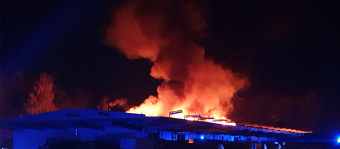 Mehr als 100 Frauen und Männer der Freiwilligen Feuerwehr haben in der Nacht zum Freitag einen Großbrand in Alsfeld bekämpft. Wie Alsfelds Stadtbrandinspektor Daniel Schäfer schilderte, schlugen meterhohe Flammen aus der Lagerhalle eines Postverteilungszentrums in der Konrad-Adenauer-Straße. Laut seinen Angaben befanden sich 110 Feuerwehrleute aus den Städten Alsfeld und Homberg (Ohm) im Löscheinsatz. Zur Bekämpfung des Brandes gingen unter anderem vier Feuerwehrtrupps mit Atemschutzgeräten in das brennende Gebäude vor, zudem wurden Wasserwerfer über zwei Drehleitern eingesetzt. Durch den massiven Löschangriff konnten die Feuerwehrleute eine Ausbreitung des Brandes verhindern. „Der Brand wurde auf einen Abschnitt begrenzt“, so Stadtbrandinspektor Schäfer. Er berichtete von explodierenden Akkus der Postzustellfahrräder in dem Gebäude sowie stark brennender Wärmedämmung auf dem Dach, die die Löscharbeiten erschwerten. In welchem Umfang Pakete und Briefe in dem Gebäude beschädigt wurden, ist noch unklar. Der entstandene Sachschaden konnte von Seiten der Polizei noch nicht beziffert werden. Zur Versorgung der Feuerwehrleute befand sich ein Betreuungszug mit Kräften des Deutschen Roten Kreuzes aus der Umgebung von Alsfeld vor Ort. +++ pw