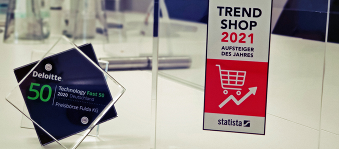 Bereits ein Dauergast ist die preisboerse24 auf der Liste der deutschen Wachstumschampions, die jährlich von der renommierten Wirtschaftsprüfungsagentur Deloitte ermittelt werden. Die „Deloitte Technology Fast 50“-Award wurden wegen der Pandemie diesmal digital vergeben. Mit dem Award werden jährlich die 50 wachstumsstärksten Unternehmen im Technologiebereich geehrt. Entscheidend ist das kumulierte prozentuale Umsatzwachstum der letzten vier Geschäftsjahre. Die preisboerse24 kam in diesem Zeitraum auf 231 Prozent und landete diesmal deutschlandweit auf Platz 31. „Die Gewinner haben erneut bewiesen, dass Innovationen der Motor für wirtschaftlichen Erfolg sind“, lobten die Experten von Deloitte.
