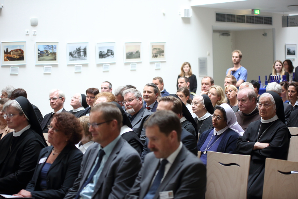 Besondere Begrüßungsworte galten, - neben Prof. Dr. Bernd Kronenberger und seiner Familie – Generaloberin Schwester Birgit Bohn, dem Direktor der Medizinischen Klinik I des Universitätsklinikums Frankfurt a. M. und Laudator Prof. Dr. Stefan Zeuzem sowie Generalvikar Prof. Dr. Gerhard Stanke und dem Direktor der Abteilung Allgemein-und Viszeralchirurgie des Klinikums Fulda Priv.-Doz. Dr. med. Achim Hellinger.