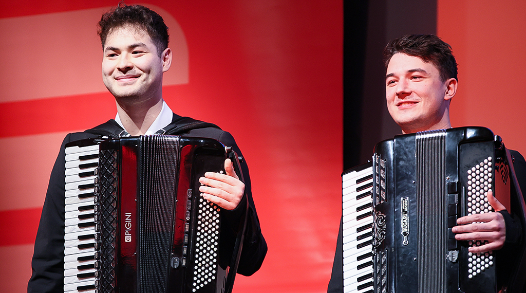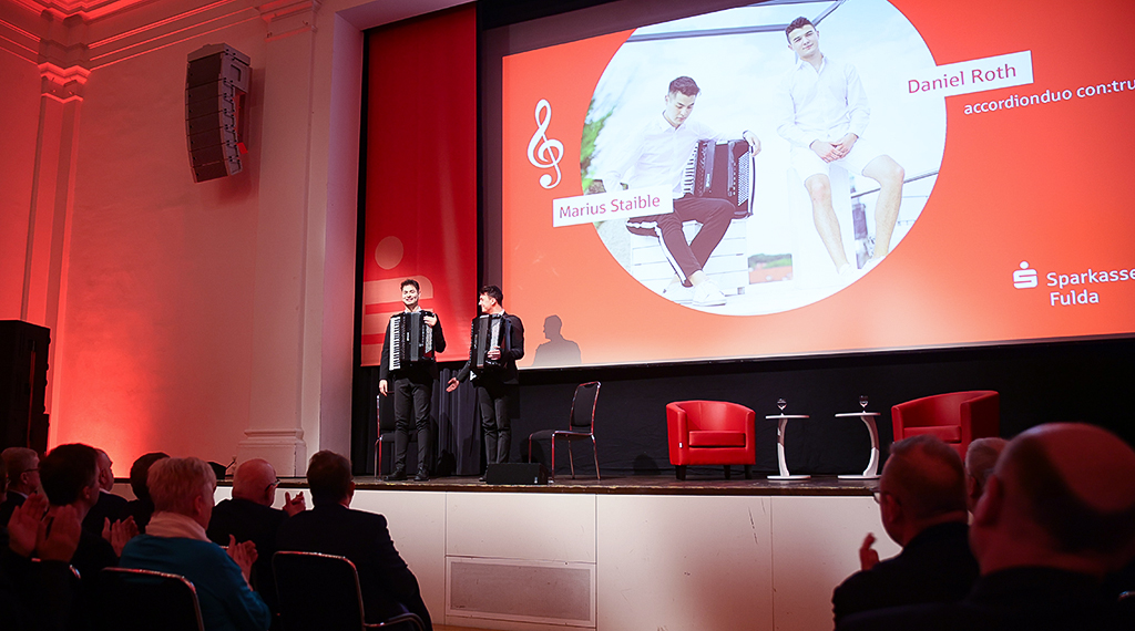 Musikalisch begleitet wurde der Vortrags- und Gesprächsabend der Sparkasse Fulda vom Akkordeonduo Con:trust. Seit nunmehr acht Jahren wirken Marius Staible und Daniel Roth als Duo. In ihrem Instrument wurden sie an der Hochschule für Musik Franszt Liszt Weimar ausgebildet und sind, wie Vorstandsvorsitzender Uwe Marohn eingangs ausführte, längst zu gefragten Botschaftern des Instruments geworden. +++ jessica auth