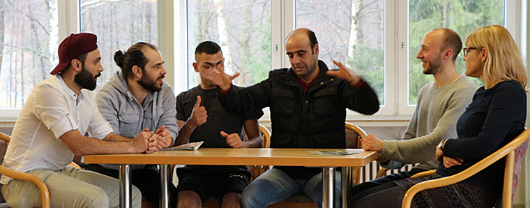 In den vergangenen drei Monaten war die Projektgruppe regelmäßig auf dem Michaelshof, um mit seinen Bewohnern mittels theaterpädagogischen Techniken kreativ sowie interaktiv zu werden, zu Gast. So konnten am vergangenen Sonntag einige der im Projektverlauf erarbeiteten – aber auch spontan improvisierten Szenen collageartig aufgeführt werden. Im Fokus der Darstellung standen Themen, die den Alltag der Geflüchteten bestimmen und Einfluss auf die Gesundheit nehmen. Ein inszeniertes Telefongespräch, welches die Schwierigkeiten bei der Wohnungssuche verdeutlichte oder die Darbietung eines im Alkoholrausch mit sich selbst hadernden Asylbewerbers, hin- und hergerissen von dem Schmerz durch den Verlust naher Angehöriger einerseits und der Hoffnung auf ein gutes Leben in Deutschland andererseits, boten dem breiten Publikum viel Raum für Interpretationen, Mitgefühl sowie Anknüpfungspunkte für den weiteren Austausch.