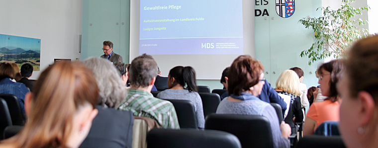 Frühzeitig Sensibilität zu schaffen, um Gewalt in der Pflege vorzubeugen, sind dem Landkreis Fulda ein wichtiges Anliegen. Dieser hat jetzt, gemeinsam mit dem Medizinischen Dienst des Spitzenverbandes Bund der Krankenkassen (MDS), das Projekt „Gewalfreie Pflege“ gestartet. Viele waren heute der Einladung ins Landratsamt zur Auftaktveranstaltung gefolgt, um sich über gewisse Gremien, diese mit dieser Thematik betraut sind, zu informieren. Wofür ist die Schutzambulanz zuständig? Wie gestaltet sich die Arbeit des Pflegestützpunktes? Bei welchen Fällen, bei Gewalt in der häuslichen Pflege, darf das Ordnungsamt tätigen werden?