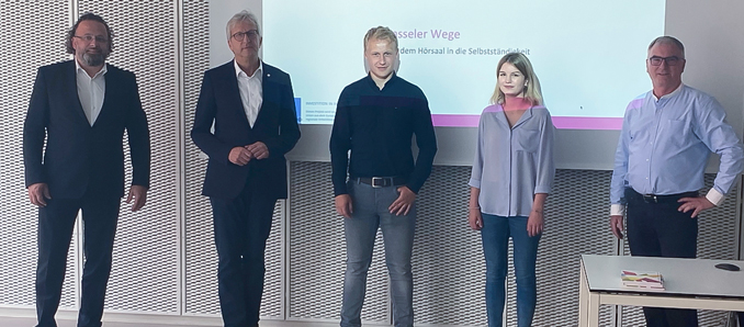 Bürgermeister Johannes Rothmund, Regierungspräsident Hermann-Josef Klüber, Manuel Bittorf und Sarah Möller (beide smartcampus Märzrasen) und Dr. Gerold Kreuter (Geschäftsführer Science Park Kassel). Foto: privat