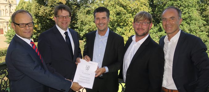 Fulda. Mit einem Beurkundungstermin im Fuldaer Stadtschloss hat ein Projekt zur Schaffung von studentischem Wohnraum einen wichtigen Schritt in Richtung Umsetzung gemacht: Im Beisein von Oberbürgermeister Dr. Heiko Wingenfeld und Bürgermeister Dag Wehner wurde der Verkauf eines Restgrundstücks der Stadt an die Bauherrengemeinschaft THS (Künzell) notariell beurkundet. Auf dem Grundstück in der Magdeburger Straße 23a soll ein Gebäude mit insgesamt 27 Studenten-Appartements entstehen. Nach Fertigstellung soll das Gebäude in das Eigentum des Studentenwerks Gießen übergehen und als Wohnheim von diesem auch betrieben werden. Zum Sommersemester 2018 sollen die ersten Studentinnen und Studenten einziehen können.