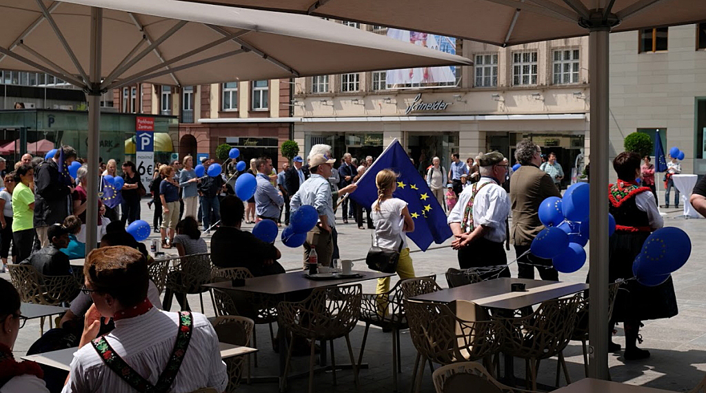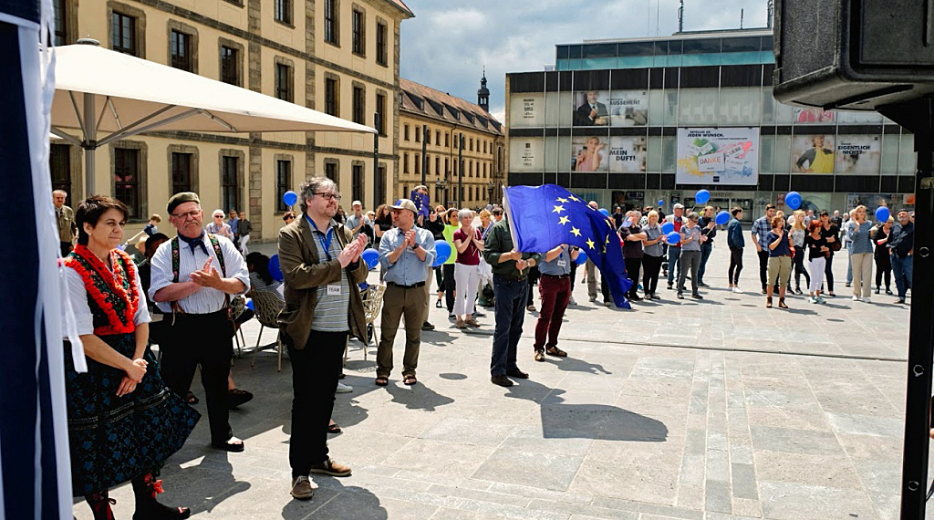 Fulda. Bei schönem Pfingstwetter begrüßte Florian Lauer vom PoE-Team die fast 200 Teilnehmer, die zum 10. Treffen von PoE auf den Universitätsplatz gekommen waren. Er freute sich darüber, dass wieder viele Menschen zusammengekommen seien, um den verantwortlichen Politikern ein Zeichen dafür zu geben, sich für das „Friedensprojekt Europa“ einzusetzen und unterstrich, wie notwendig es sei, in Europa gemeinsam aufzutreten und mit gemeinsamer Stimme zu sprechen.