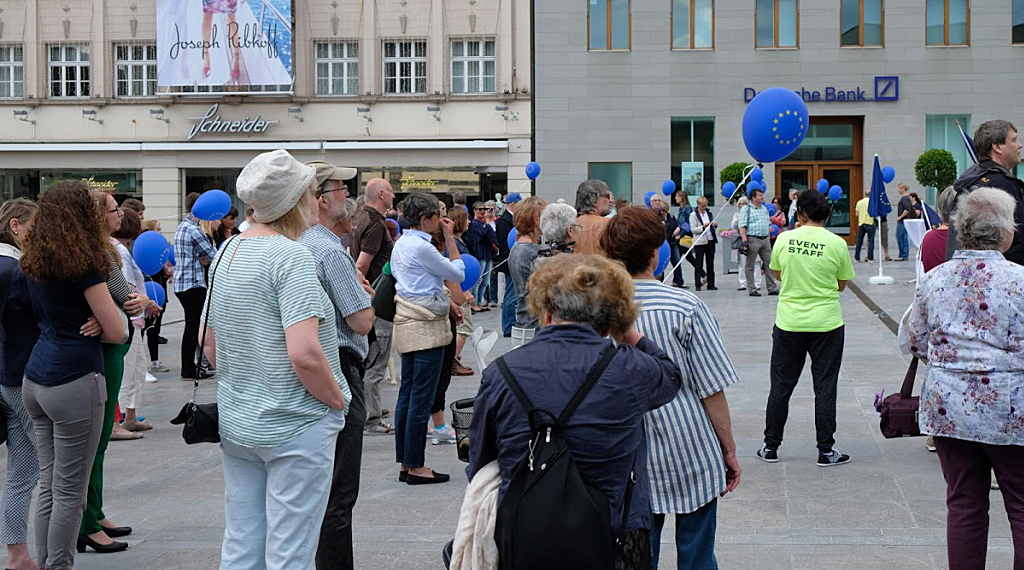 2. Konkretisierung von Maßnahmen, um die Erklärungen von Rom vom 25. März 2017 in die Politpraxis umzusetzen. 3. Maßnahmen, um den Rückhalt und die Akzeptanz bei den EU-Bürgern zu verbessern. Welche Reformvorhaben werden gesehen? Zum Abschluss der Veranstaltung gab es zum Lied Insieme wieder eine große Menschenkette. Am 2. Juli wird es das nächste Pulse of Europe Treffen geben. +++