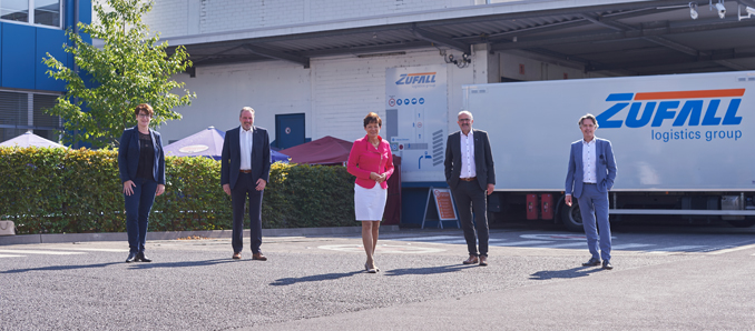 Begrüßt wurde die Staatsministerin von Niederlassungsleiter Christoph Göbel: „Häufig stehen und standen in den vergangenen Monaten ja die Großkonzerne im Fokus der Politik. Daher freuen wir uns sehr darüber, dass Ministerin Puttrich ZUFALL als familiengeführten Mittelständler mit über 90-jähriger Tradition besucht, um sich über die Entwicklungen in der Logistik zu informieren. Ich denke, wir konnten der Ministerin einen guten Eindruck vermitteln, wie sich ein Logistikunternehmen nicht nur in COVID-19-Zeiten schlägt sondern auch auf einen Hard-Brexit vorbereitet.“
