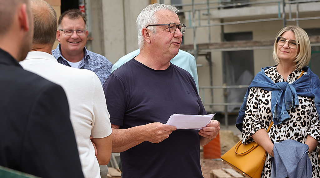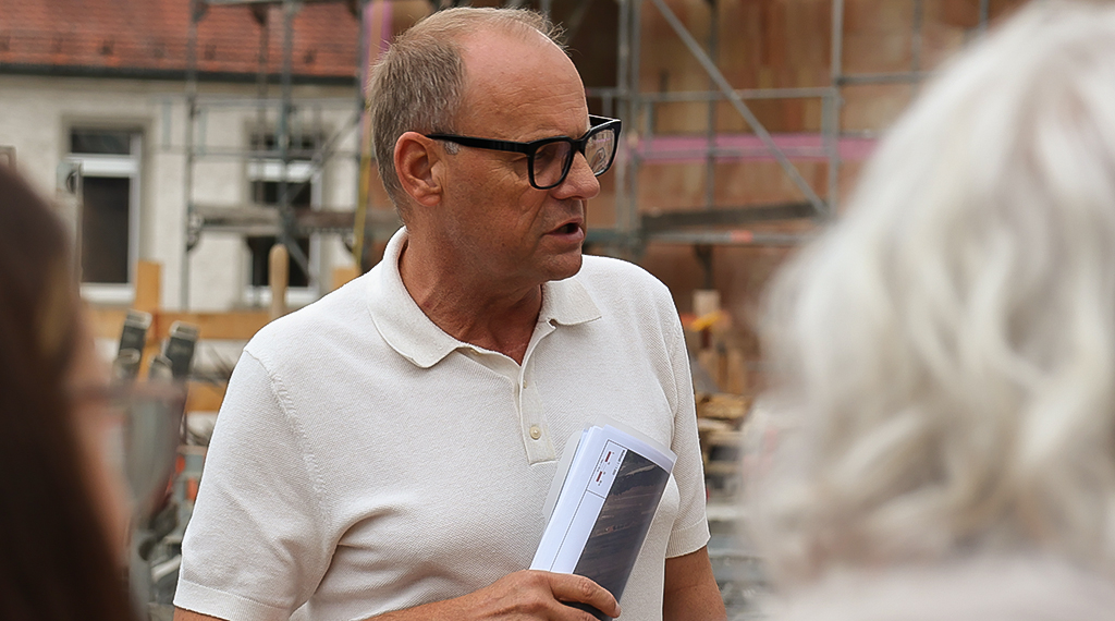 „Ich bin optimistisch, dass wir den Zeitplan einhalten können. Wir haben mit den Reith Wehner Storch-Architekten ein kompetentes, verlässliches Architekturbüro an unserer Seite. Wir sind ein gutes Team. Projektleiter ist mein Sohn, Christian, der heute leider verhindert ist und deshalb nicht bei uns sein kann“, führte Martin Geisendörfer weiter aus. Ein besonderer Dank adressierte an die Stadt Fulda für die bisherige gute Zusammenarbeit, im Besonderen an den Sachgebietsleiter Untere Denkmalschutzbehörde Adrian Hehl, mit dem ein konstruktives Zusammenarbeiten möglich war.