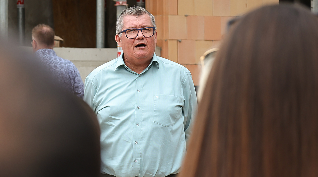 „Der Neubau des Projekts ‚Waldschlösschen‘ ist für uns eine absolute Herzensangelegenheit“, hob Diplom-Bauingenieur Martin Geisendörfer, Gründer der MARGE Consulting GmbH, bei dem Vor-Ort-Termin hervor, der für die Investorenfamilien Burg und Geisendörfer begrüßte. Der Unternehmensgründer wurde unweit des Standorts, in der Birkenallee geboren, besuchte den Katholischen Kindergarten „St. Joseph“ und hat an den Stadtteil schöne Kindheitserinnerungen. Wie Martin Geisendörfer ausführte, soll das Bauprojekt in zwei Bauabschnitten erfolgen. Im ersten Bauabschnitt erfolgt der soziale Wohnungsbau mit 30 Wohneinheiten. Dieser soll spätestens im November 2025 fertiggestellt und bezugsfertig sein. Im zweiten Bauabschnitt erfolgt die Revitalisierung des Hotels mit Gastronomie. Die Fertigstellung hier ist auf Mai 2026 datiert.