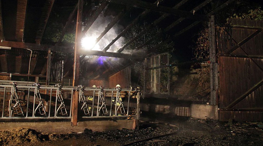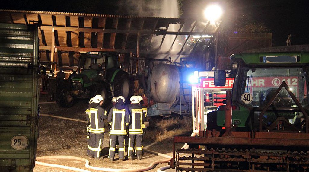 Radladerbrand greift auf Stallungsanlage über - Feuerwehr verhindert Großbrand