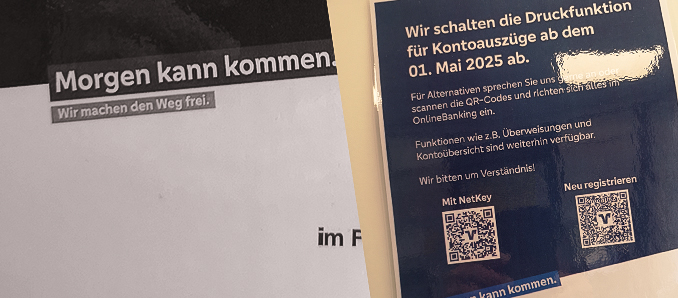 Warum das Ausdrucken der Kontoauszüge gestoppt wurde, ist unklar. Technische Schwierigkeiten beim Drucken gab es in der Vergangenheit. Wäre das der Grund, wäre es peinlich. Denn technische Probleme sind lösbar. Falls wirtschaftliche Gründe dazu führten, wäre das nicht hinnehmbar.