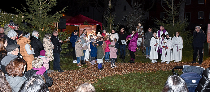 Auf den 10 Tafeln gibt es meditative Texte zu Advent, den vier Adventssonntagen, der Herbergsuche, Nikolaus, dem Friedenslicht, den Heiligen Drei Königen und der Weihnachtskrippe. Die Weihnachtskrippe stellt Maria und Josef mit dem Christkind und Ochs und Esel lebensgroß dar. Auf einer Tafel ist das Weihnachtsevangelium zu lesen. Die Tafeln sind abends bis 22 Uhr mit LED-Lichtern beleuchtet und die Figurengruppen haben LED bestückte Kerzen. Der Adventsweg ist täglich bis 08. Januar 2023 geöffnet, jederzeit besuchbar und selbsterklärend. Am 06.12. um 17 Uhr kommt der Nikolaus auf den Adventsweg und die Kinder werden einen Schokoladennikolaus erhalten. Für die Erwachsenen gibt es Glühwein. Weitere Angebote sind der „Lebendige Adventskalender“ am 09. und 19.12. um 17 Uhr auf dem Adventsweg, die Übergabe des Friedenslicht am 11.12. um 16 Uhr, das dann bis zum Abbau brennen wird und geholt werden kann, das „Offene Singen“ am 18.12. um 15 Uhr zu dem Jeder eingeladen ist, unter instrumentaler Begleitung mitzusingen sowie die Aussendung der Sternsinger am 08.01.2023 um ca. 11.30 Uhr nach dem Sonntagsgottesdienst in der Stiftskirche. +++ Winfried Möller