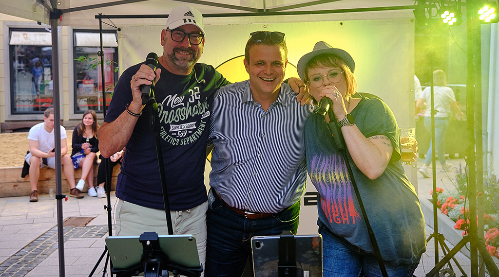 Gastgeber Jochen Helmeke sorgte bei strahlendem Sonnenschein mit einer Auswahl an Fassbier, Weißbier, Wein, Sekt und alkoholfreien Getränken für Erfrischung. Das kulinarische Angebot reichte von klassischen Grillspezialitäten über Wildschweinbratwurst, wahlweise mit Chili-Schärfe, bis hin zu vegetarischen Köstlichkeiten. Musikalisch untermalt wurde das Event von „LOB – Live ohne Band“. Die Musiker Sabine Martino-Krüger und Mick Pickel begeisterten die zahlreichen Besucher in der Rathausgasse mit Hits der Achtziger und Neunziger, der Neuen Deutschen Welle sowie Schlagern und Popklassikern.