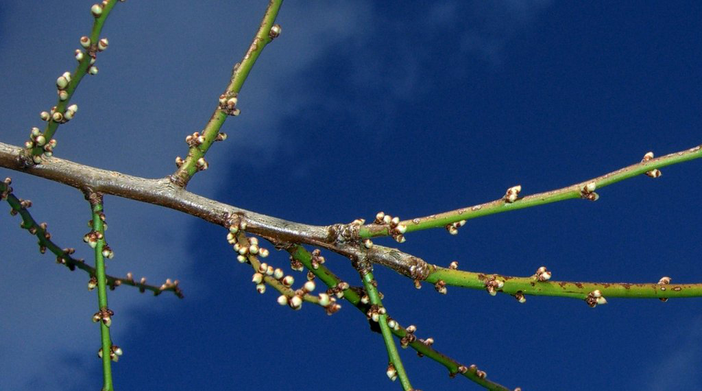 Auch die Blütenknospen mancher Obstbäume sind schon deutlich zu erkennen