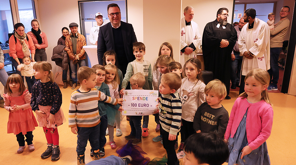 Die Regenbogengruppe ist eine Investition in die Zukunft der Kinder in der Gemeinde. „Kinder sind unsere Zukunft, es lohnt sich, in sie zu investieren“, sagte Bürgermeister Gärtner abschließend, der an die Gruppe einen Scheck im Wert von 100 Euro für neue Spielsachen aus dem Erlös des Glühweinverkaufs des gemeindlichen Weihnachtsmarktes übergab. Mit der Gruppenerweiterung wurde Platz für 25 neue Kinder geschaffen. Die Gemeinde Flieden und das Land Hessen bezuschussen einen Kitaplatz mit rund 10.000 Euro im Jahr.