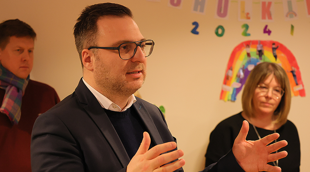 Der Geschäftsführer der St. Vinzenz Soziale Werke gGmbH, Sven Haustein, pflichtete seinem Vorredner bei dem hohen Bedarf an Betreuungsplätzen und den damit verbundenen Herausforderungen für die Kommunen bei. Aktuell fehlten in Hessen 41.000 Betreuungsplätze. Bundesweit gerechnet, seien dies weit über 400.000. Zu diesem Ergebnis kommt eine Studie, die die Bertelsmann-Stiftung in Auftrag gab und eine Prognose bis 2030 gibt. Die Räumlichkeiten im ehemaligen Tagespflege-Stützpunkt in „St. Katharina“ dem Thema frühkindlicher Bildung zu widmen, wurde von Beginn an als sehr sinnstiftend empfunden. Sven Haustein dankte der Gemeinde Flieden, allen voran Bürgermeister Christopher Gärtner für die rasche und unkomplizierte Realisierung. "Mit anzupacken" und "ansprechbar zu sein", gerade, wenn es um die Kleinsten in unserer Gesellschaft geht, versteht Haustein nicht zuletzt als ein Auftrag an die Gesellschaft.