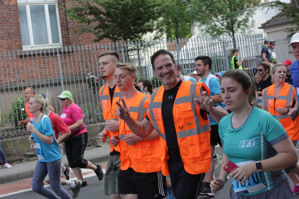 Um kurz vor 15:00 Uhr erreichte die Stimmung im Startbereich in der Rangstraße, als hunderte Luftballons in den Himmel stiegen und der Countdown für den Startschuss vielstimmig erklang, ihren Höhepunkt. Trotz der warmen Temperaturen von über 25 Grad, ließen sich diese die gut vorbereiteten Läuferinnen und Läufer sowie all diejenigen, die es heute etwas gemütlicher angegangen waren, kaum anmerken und zogen den Lauf ambitioniert bis zum Ziel im Freibad Rosenau durch.