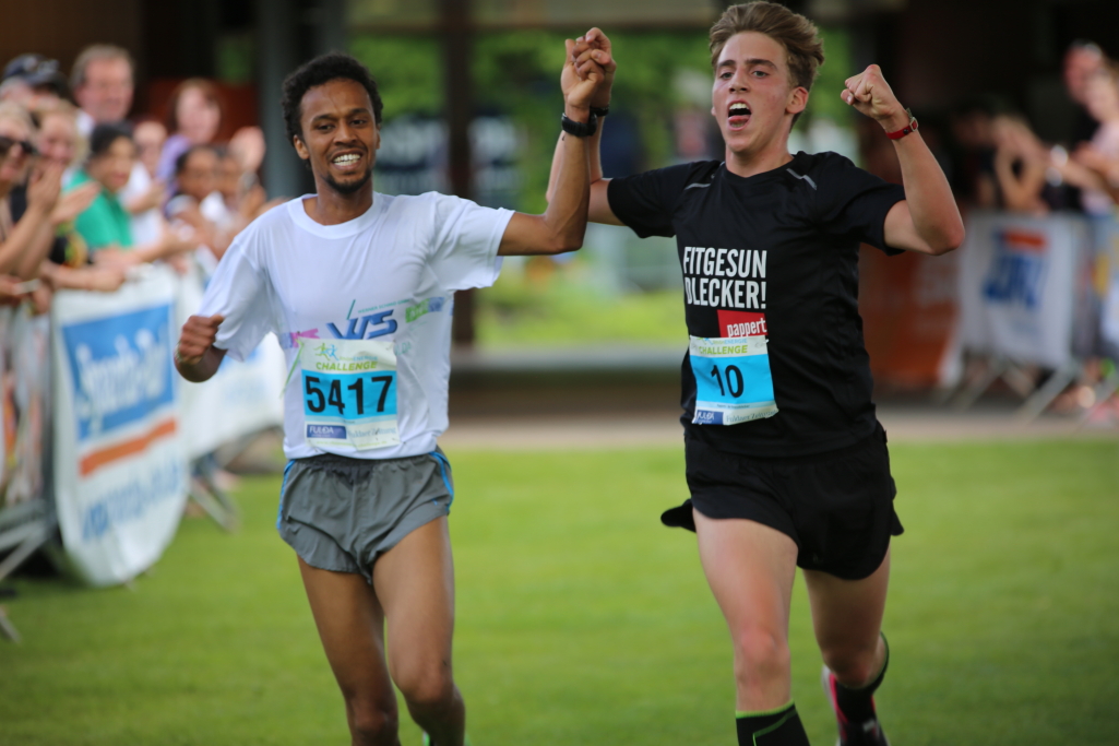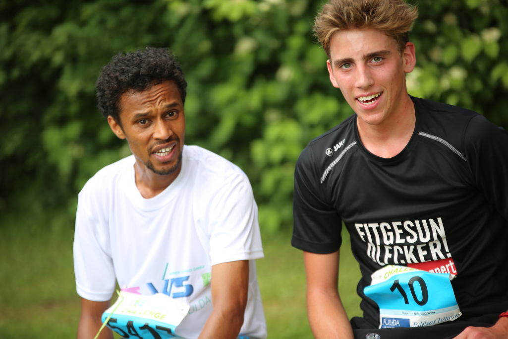 Genau so hatten sich das die Veranstalter, als sie vor 12 Jahren die RhönEnergie Challenge ins Leben riefen, vorgestellt. Besonders groß war die Freude über den Spendenscheck von über 14.000 Euro, den die Veranstalter an den hiesigen Verlag für die Aktion „Ich brauche deine Hilfe“ überreichten. Pro Teilnehmer wurden zwei Euro an diese Aktion gespendet; drei Euro waren es bei Schülern, die wieder zurück an die teilnehmenden Schulen fließen, wovon spezielle Schulprojekte unterstützt werden sollen. Als schnellste Läufer bei der diesjährigen RhönEnergie Challenge fungierten Mandana Hoffmann, Lorenz Rau sowie Iljas Iman. Zum vierten Mal beim Challenge-Lauf in Folge hielt Mandana Hofmann den Rekord als schnellste Läuferin. Die rund 6,2 Kilometer durch Fuldas Innenstadt lief sie in 25:29 Minuten. Freundschaftlich verbunden sich über den Köpfen an den Händen haltend liefen Lorenz Rau und Iljas Iman ins Ziel ein. Sie liefen die Kilometer in 20:17 Minuten.