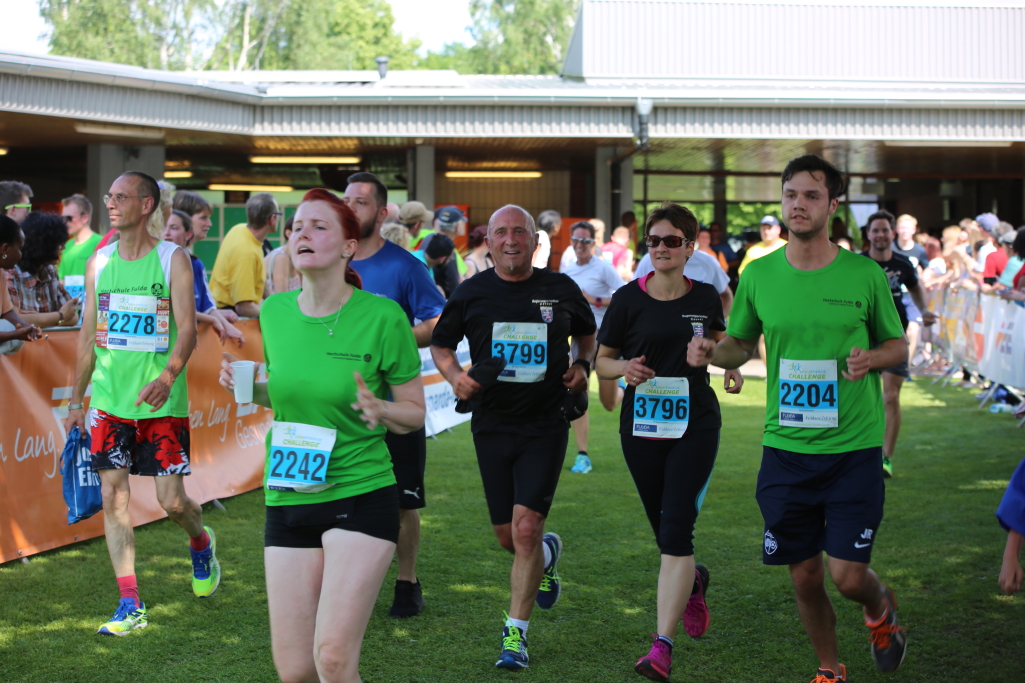 Da die Läuferinnen und Läufer vorher viel Flüssigkeit zu sich genommen hatten, kam es deshalb nur zu wenigen, die wegen Kreislaufbeschwerden medizinische Hilfe des Deutschen Roten Kreuzes in Anspruch nehmen mussten. Im Verhältnis zu der Vielzahl der Aktiven hielten sich diese Vorfälle aber in Grenzen. Und auch sonst kam es zu keinen Zwischenfällen, die ein höheres Aufgebot an Polizeibeamten einforderten, was wesentlich zum positiven Fazit der traditionellen Veranstaltung von Seiten der Veranstalter beitrug. Im Zielbereich, wo sich das Freibad Rosenau auch in diesem Jahr wieder als sehr geeigneter Standort erwies, feierten sich die Aktiven gegenseitig. Hier blickte man in strahlende Gesichter, fremde Menschen klatschten sich ab und genossen gemeinsam das Erreichte.