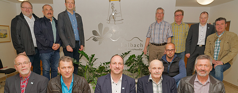 Bürgermeister Hölzer, Mitglieder des Gemeindevorstandes sowie die Fraktionsvorsitzenden.