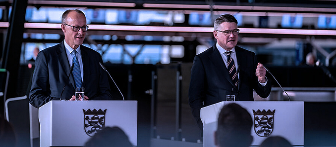 Der Termin in Hessen bildete den Abschluss der Antrittsbesuche des Bundeskanzlers in den Ländern. Nach der offiziellen Begrüßung durch Ministerpräsident Rhein auf dem Rollfeld des neuen Terminal 3 des Frankfurter Flughafens und einem Rundgang durch die neue Abflughalle nahm Merz an einer Sitzung des hessischen Kabinetts unter Leitung von Rhein teil. Das neue Terminal 3 sei das größte privat finanzierte Infrastrukturprojekt in Europa, sagte Rhein. Zehn Jahre lang sei unter schwierigen Bedingungen gebaut worden, dennoch sei das Projekt im Zeitplan und im Kostenrahmen geblieben. Dies zeige, dass in Deutschland anspruchsvolle Projekte wieder effizient und verlässlich umgesetzt werden könnten. Das Qualitätssiegel „Made in Germany“ sei zurück. Der Frankfurter Flughafen sei ein Dreh- und Angelpunkt für die europäische Luftfahrt und ein wichtiger Wirtschaftsmotor. Rhein dankte dem Bundeskanzler für das von der Bundesregierung auf den Weg gebrachte Entlastungspaket für die Luftfahrt und forderte weitere schnelle Entlastungen. 2026 müsse ein Comeback-Jahr für die Luftfahrt werden.
