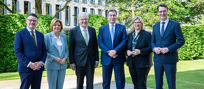 Boris Rhein, Malu Dreyer, Winfried Kretschmann, Dr. Markus Söder, Anke Rehlinger und Hendrik Wüst. Foto: Vertretung des Landes Baden-Württemberg beim Bund