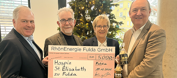 Bei der Übergabe eines symbolischen Schecks erläuterte RhönEnergie-Geschäftsführer Martin Heun das Engagement des Unternehmens. „Wir sind der Herzschlag der Region. Deshalb ist es uns wichtig, gerade vor Weihnachten ein Herz für die zu zeigen, die unsere Hilfe brauchen. Wir finden die Idee unserer Mitarbeitenden großartig“, sagte Heun. Auch Vertriebschef Klaus Moll würdigte die Arbeit des Hospizes. „Ihr ehrenamtlicher Einsatz ist ein Gewinn für die Region. Wir freuen uns, wenn wir diesen Einsatz unterstützen können“, erklärte Moll.