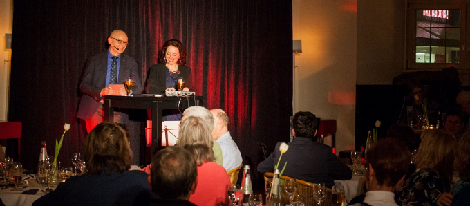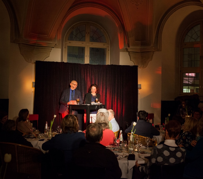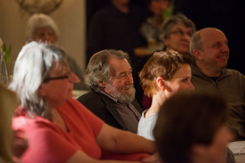 Fulda. „Zesomme genomme“ unter diesem Motto fand am 24. und wegen großer Nachfrage auch am 23.02.2016 ein ganz außergewöhnliches „Gernsehen und Abendessen“ im Museumscafé statt. Die charmante Gastgeberin des Abends, Marianne Blum, hatte den Rhöner Mundart Autor, Richard Müller und Michael Bleuel, der „emeritierten Comedian“ des beliebten Duos Wolf & Bleuel zu ihrer Dinner-Show eingeladen. Extra für die Mundartlesung und das Gernsehen hat er eine Ausnahme von seiner selbstgewählten Bühnenabstinenz gemacht.