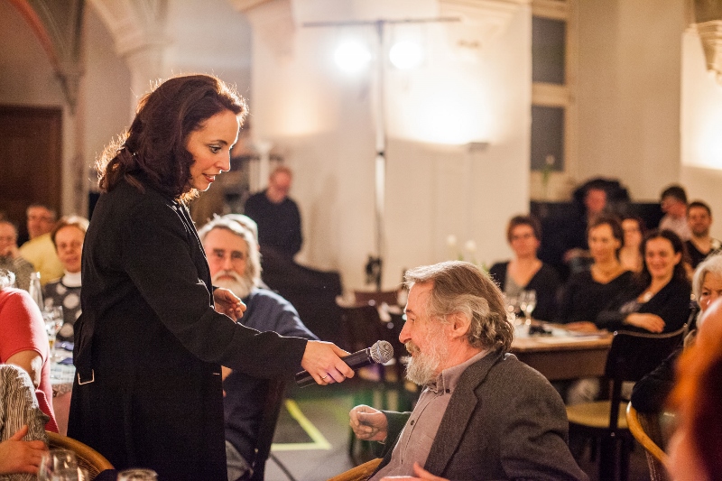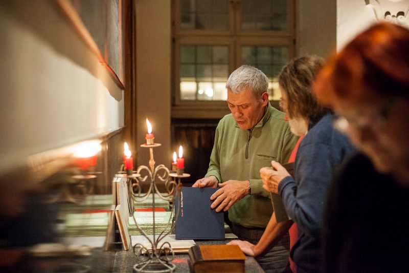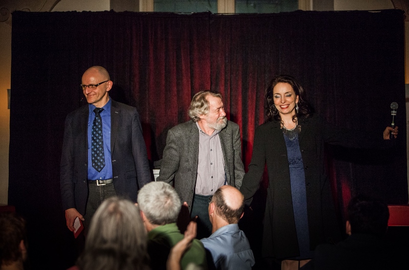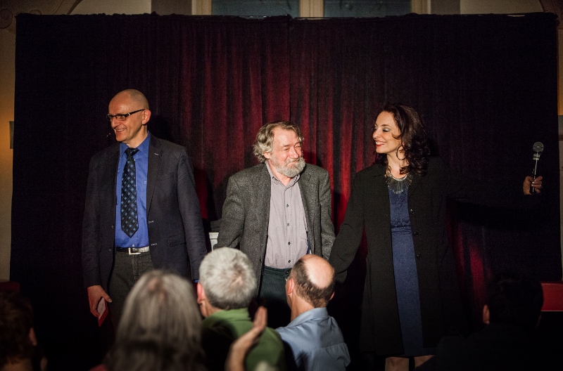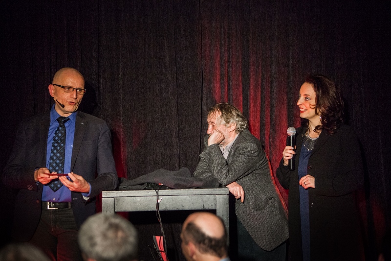 Auch Richard Müller schien sehr zufrieden mit der Bleuel’schen Interpretation seiner Texte zu sein und freute sich sichtlich darüber, dass so viele Menschen zu dieser Lesung gekommen waren. Manfred Borg von der Buchhandlung Ulenspiegel, der Müllers Werke zum Teil verlegt und den Kontakt zwischen der Entertainerin und dem Schriftsteller hergestellt hatte, gab einige Einblicke in das Leben und Wirken des studierten Drucktechnikers, dessen Erzeugnisse übrigens in vielen deutschen Museen zu bewundern sind.