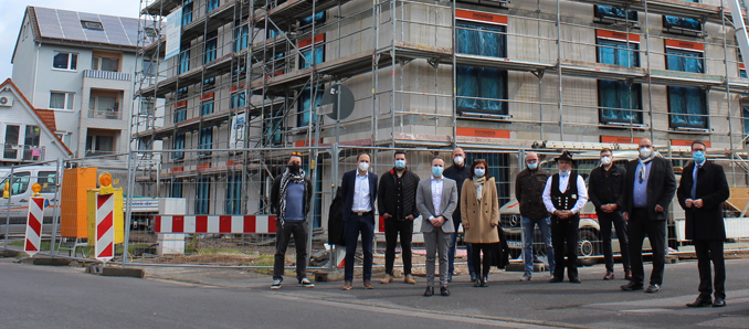 Der Rohbau entstand innerhalb weniger Monate, alle Zeitpläne konnten trotz der erschwerten Rahmenbedingungen durch die Corona-Pandemie eingehalten werden. Fertiggestellt werden soll das Gebäude bis April 2022, dafür wünschte Dachdeckermeister Wilfried Möller dem Bauvorhaben in seinem Richtspruch gutes Gelingen. Der Neubau steht in unmittelbarer Nähe zu zwei Mehrfamilienhäusern der Gemeinde, die in den 1970er Jahren errichtet wurden, und die ebenfalls modernisiert werden sollen. Bürgermeister Schejna freute sich darüber, dass durch die Unterstützung des Main-Kinzig-Kreises der Quadratmeterpreis der neuen Wohnungen knapp unter sieben Euro liegen wird, also unter dem offiziellen Mietspiegel von 7,26 Euro. Möglich wird dies auch durch das Förderprogramm KfW 55, durch das die Gemeinde rund 1,8 Millionen Euro erhält und noch einmal 1,8 Millionen Euro aus dem Kommunalen Investitionsprogramm.