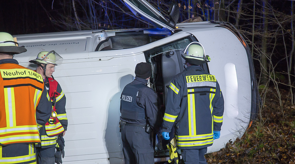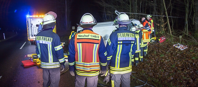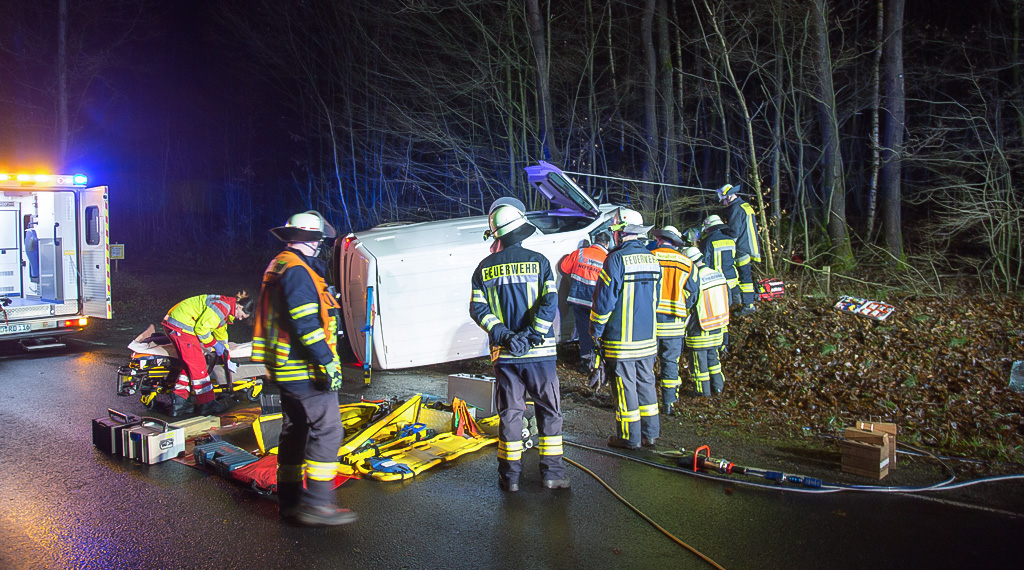 In der Nacht zu Dienstag ist ein Autofahrer zwischen Hauswurz und Rommerz im Landkreis Fulda schwer verunglückt. Der 48-jähriger Fahrer eines VW-Bus hatte nach einer Rechtskurve im Wald die Kontrolle über sein Fahrzeug verloren und neben der Fahrbahn auf die Seite gestürzt. Der Fahrer des Arzneimitteltransporters hatte zwar noch selbst den Notruf gewählt, konnte der Leitstelle aber nicht mehr sagen, wo genau er verunfallt ist. Daraufhin wurden zwei Feuerwehren alarmiert um nach der Unfallstelle zu suchen. Kurz darauf meldete sich jedoch zum Glück ein anderer Autofahrer, der den genauen Unfallort melden konnte. Die eintreffenden Kräfte fanden den bewusstlosen Fahrer eingeklemmt in seinem VW-Bus. Die Feuerwehr musste ihn mit schwerem Gerät aus dem auf der Seite liegenden Fahrzeug befreien. Der 48-Jährige hatte sich bei dem Unfall schwer verletzt und musste ins Klinikum nach Fulda gebracht werden. Als Unfallursache geht die Polizei davon aus, dass der Mann mit zu hoher Geschwindigkeit auf der nassen Fahrbahn unterwegs war. An dem VW-Bus entstand Totalschaden. +++