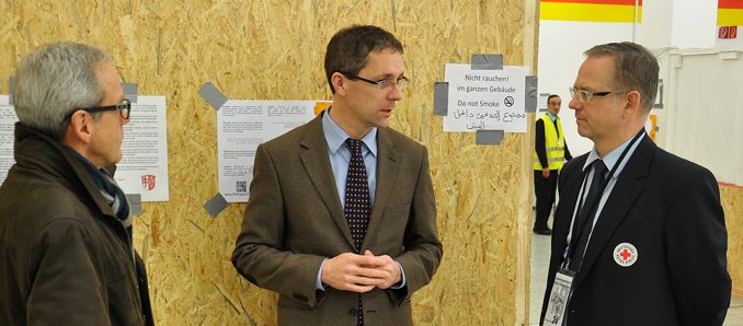 „Ich bedanke mich bei allen Organisationen, Helferinnen und Helfern, die an einem Strang gezogen haben, so dass wir diesen Kraftakt in den vergangenen Wochen mit ehrenamtlicher Hilfe bewältigen konnten“, erklärte Landrat Dr. Michael Koch am Wochenende. Rund 700 Helfer hatten beim Umbau des Gebäudes mitgeholfen. Jetzt sei es an der Zeit, den Betrieb der Notunterkunft in die Hände von Hauptamtlichen zu übergeben.