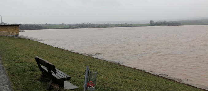 Nach Starkregen und Tauwetter führt der Seemenbach, ein Nebenfluss der Nidder, extrem viel Wasser. Am gestrigen Freitag war die Büdinger Altstadt stellenweise hüfthoch überflutet. Nachdem das Wasser aus der Altstadt zurückgegangen ist, wird über den Seemenbach weiter viel Wasser transportiert. Das Rückhaltebecken zwischen Düdelsheim und Lindheim ist für solche Hochwasserereignisse eigens gebaut worden. Die Wassermengen, wie sie derzeit vom Seemenbach geführt werden, bringen die Anlage allerdings an ihre Grenzen. Dadurch droht in der Folge auch ein Anstieg der Nidder, was unter anderem Ortsteile bzw. Stadtteile von Nidderau, Schöneck und Niederdorfelden betrifft.