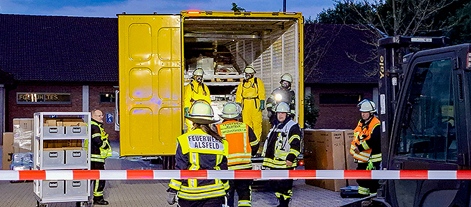 In der Nacht von Montag auf Dienstag kam es in Alsfeld zu einem Gefahrstoffeinsatz, nachdem ein Zeuge gegen 2 Uhr meldete, dass aus einem geparkten Sattelzug in der Grünberger Straße eine unbekannte Flüssigkeit austrat. Der Lkw stand auf dem Parkplatz eines Discounters.