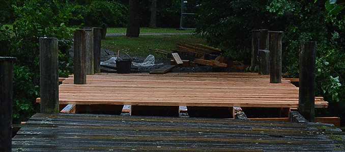 Die Stegbrücke zwischen den beiden Teichen am Hünfelder Haselsee wird derzeit erneuert. Wie Bürgermeister Benjamin Tschesnok dazu mitteilt, war bei den einschlägigen Untersuchungen festgestellt worden, dass die Holzbrücke, die seit fast 35 Jahren die beiden Bereiche des Haselsees teilt, erneuert werden muss.