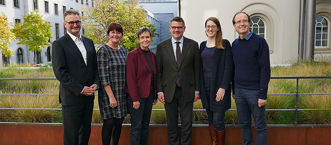 Der frisch gewählte Vorstand der Parlamentariergruppe der Europa Union (v.l.) Oliver Stirböck, Sabine Waschke, Miriam Dahlke, Landtagspräsident Boris Rhein, Hildegart Klär (Europa Union), Tobias Utter Foto: Hessischer Landtag