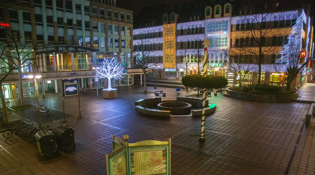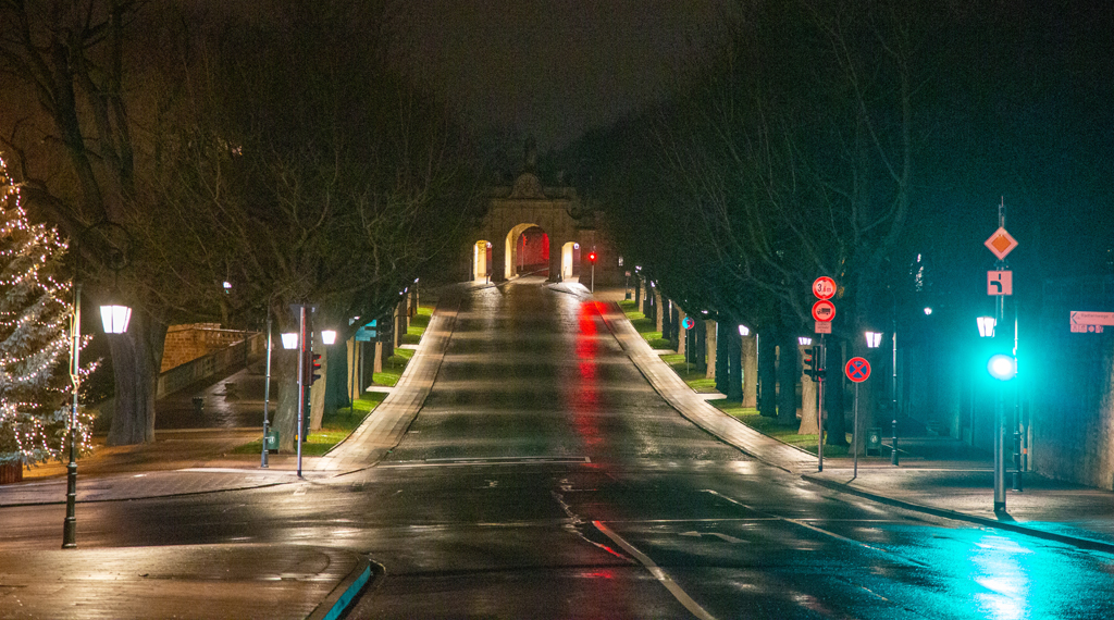 Am Samstagabend bot sich in Fulda ein außergewöhnliches Bild. Die Ausgangssperre zwischen 21 und 5 Uhr ist erstmals im Landkreis Fulda in Kraft getreten. Orte, die an normalen Samstagabenden in der osthessischen Stadt gut frequentiert sind, waren nun menschenleer. Nachdem die Inzidenz im Landkreis Fulda über 200 lag, haben die Verantwortlichen reagiert und eine Allgemeinverfügung herausgegeben. Im gesamten Gebiet des Landkreises gilt zwischen 21 Uhr und 5 Uhr des Folgetages eine Ausgangssperre. Ob beim Emaillierwerk, den Kaiserwiesen, dem Uniplatz, dem Bahnhofsplatz, in der Löherstraße, der Friedrichstraße oder dem Bermuda Dreieck – nirgends waren Menschen zu sehen. Es herrschte absolute Stille – ein ungewöhnliches Bild. Lediglich auf der B27 waren einige Fahrzeuge unterwegs. Am Samstagabend entstand zumindest der Eindruck, dass sich die Menschen an die Ausgangssperre halten. Zudem gilt im Landkreis ein ganztägiges Alkoholverbot. Die Allgemeinverfügung ist zunächst bis zum 20. Dezember um 4 Uhr gültig. +++