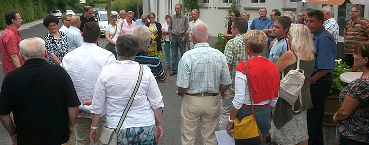 Fulda. Die zweite Station der diesjährigen Sommerbesuche der CDU-Stadtverordnetenfraktion war Gläserzell. Eduard Hannig, Ortsvorsteher von Gläserzell, konnte den Stadtverordneten den Erhalt örtlicher Traditionen am Beispiel des Backhauses vorstellen. Zudem verwies Hannig auf die gelungene Aufnahme von 23 syrischen Flüchtlingen, die seit gut 2 Wochen eine Unterkunft in einem Wohnheim der Arbeiterwohlfahrt (AWO) in Gläserzell gefunden haben. Gemeinsam mit Felix Statt, Vorsitzender des CDU Ortsverbandes, formulierte Eduard Hannig die Sanierung der Fulda-Brücke zum Sportplatz als ein wichtiges Anliegen des Ortes, von dessen Notwendigkeit sich die CDU-Stadtverordneten überzeugen konnten.