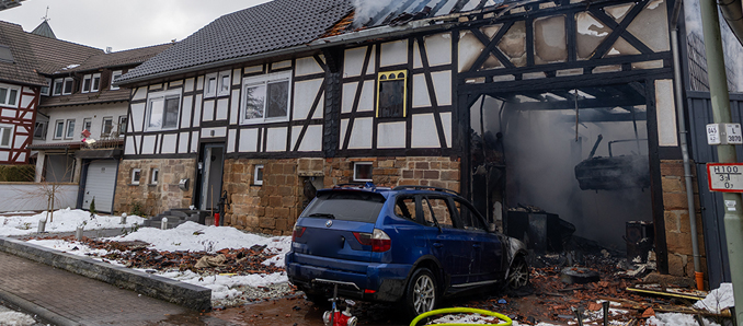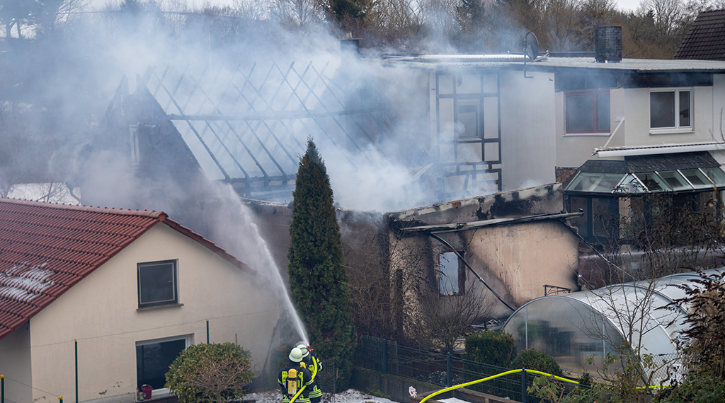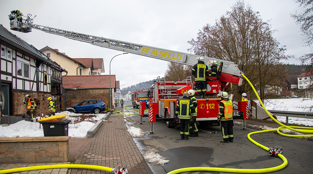 Personen befanden sich letztlich nicht in dem Gebäude. Die Feuerwehr verhinderte durch eine sogenannte Riegelstellung ein Übergreifen der Flammen auf ein angrenzendes Wohnhaus. Auch eine benachbarte Garage musste abgeschirmt werden. Wegen der bestehenden Explosionsgefahr verzichteten die Einsatzkräfte auf einen Innenangriff und löschten den Brand über die Drehleiter der Feuerwehr Alsfeld von oben.