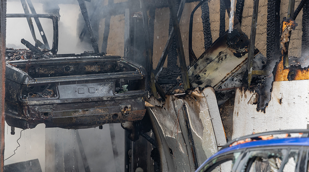 Beim Eintreffen der Feuerwehr stand die Scheune bereits in Vollbrand. Nach Angaben von Gemeindebrandinspektor Sören Beyer kam es zu mehreren Explosionen. Das Scheunentor war zu diesem Zeitpunkt bereits zerstört, zudem brannte der Dachstuhl.