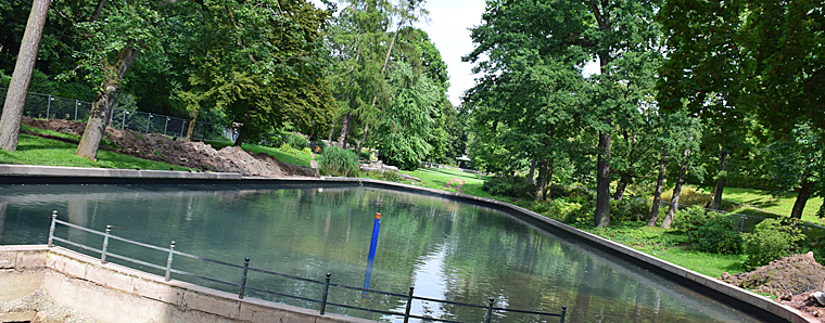 Fulda. Der Schlossgartenweiher bekommt zurzeit ein neues Gesicht. Mitte Juli haben die Arbeiten begonnen. Inzwischen ist das Becken probeweise mit Wasser gefüllt, um die Dichtigkeit zu überprüfen.Bis Spätherbst erhält der Weiher ein hölzernes Podest. Im Winter bei dauerhaften Minusgraden soll es Schlittschuhläufern möglich machen, bequem auf die Eisfläche zu gelangen. Denn künftig wird das Wasser im Herbst nicht mehr abgelassen, sondern bleibt im Weiher. Die geringe Teichtiefe von maximal 1,60 Metern soll die Eisbildung erleichtern.