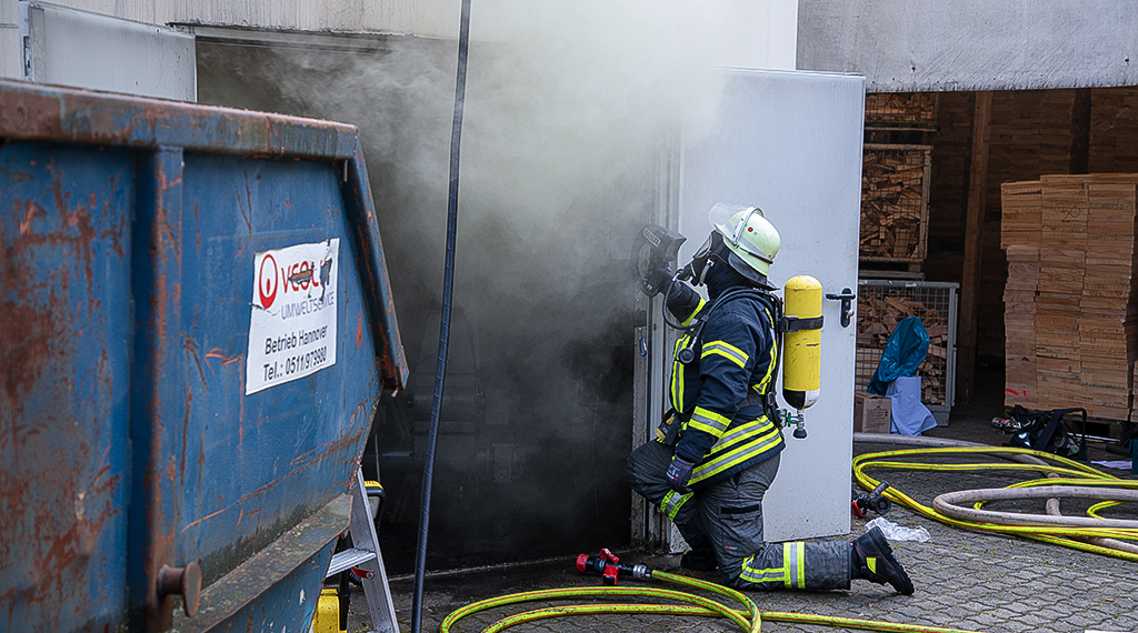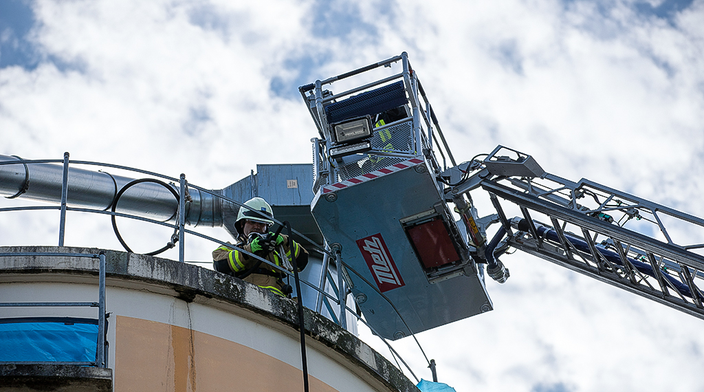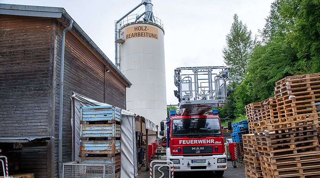 Es ist kurz nach 13 Uhr, als die Feuerwehr aus Schlüchtern auf das Werksgelände eines holzverarbeitenden Betriebs im Ort gerufen wurde. Aus dem Unterbau eines Spänebunkers war dichter Rauch zu sehen. Ein Blick in die Heizungsanlage zeigte, dass es an einer Förderschnecke brannte und die Flammen auch auf die Ladung des Bunkers, rund 100 Kubikmeter Holzspäne, übergegriffen hatten. Wie ein riesiger Grill rauchte der Bunker, in dessen Inneren das Holz langsam vor sich hin glimmte. Sowohl mit Wasser als auch Löschschaum war ein Herankommen für die Feuerwehrkräfte unmöglich. Und so griff man nach längerer Beratung auf die Experten der Werksfeuerwehr Merck zurück. Aus dem 100 Kilometer entfernten Darmstadt rückten die Kräfte nach Schlüchtern an. Mit im Gepäck hatten sie einen Sonderabrollcontainer mit Kohlenstoffdioxid. Nachdem die Feuerwehrleute den Siloturm komplett luftdicht verpackt hatten, wurde dieser von oben mit Kohlenstoffdioxid geflutet. „Da dieses schwerer als Luft ist, verdrängt es den Sauerstoff und erstickt somit die Flammen“, so die Hoffnung von Einsatzleiter Christian Gärtner. Doch bis der Brand endgültig gelöscht ist, ist der Abend über der Stadt eingebrochen. Der entstandene Schaden wird auf mehrere zehntausend Euro geschätzt. Verletzt wurde zum Glück niemand. +++