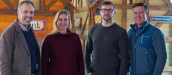 Wie die Erlebniswelt aussehen wird, lässt sich langsam erkennen. Sie freuen sich auf den Tag der Eröffnung (von links): Werner Bensing, Franziska Fiedler-Leipold, Thorsten Kalinowsky und Bürgermeister Matthias Möller. Foto: Stadt Schlüchtern