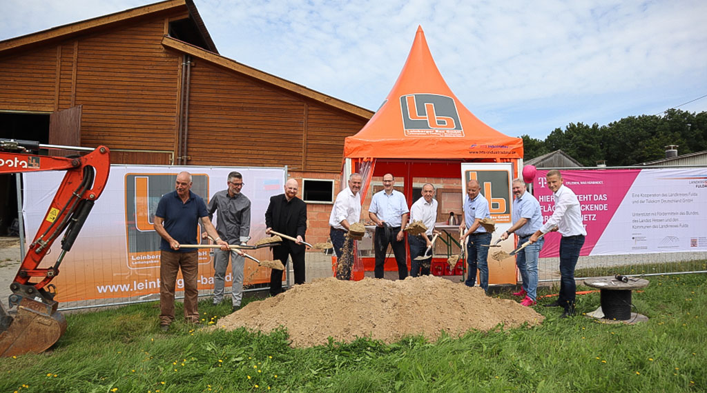Wichtiger Tag für den Landkreis Fulda: Die weißen Flecken in der Breitbandversorgung werden beseitigt. Mit dem Spatenstich am Seeshof bei Weyhers haben die Bauarbeiten für 126 Anschlüssen begonnen. Nach dem Abschluss der Arbeiten wird es flächendeckend schnelles Internet im gesamten Kreisgebiet geben.