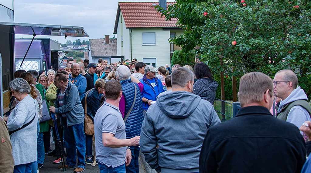 Hergestellt wird die Süßigkeit im eigenen Haus im extra dafür umgebauten Keller. „Die behördlichen Auflagen waren sehr groß, zum Schluss ist aber alles von den Behörden anstandslos abgenommen worden“, so Schneidmüller-Hanl. Neben der köstlichen Süßigkeit gab es am Tag der Eröffnung Bratwurst, Burger und Getränke. Rund 6.000 Schokoküsse wurden an diesem Tag unter die Kundinnen und Kunden gebracht, die eine bis zu 1.000 Meter lange Schlange bildeten. Verkaufsleiterin Heidi Bürling ist als Marktstandverkäuferin mit im Team von Jens Schneidmüller-Hanl. Seit 36 Jahren verkauft sie schon die Schokoküsse und hatte bei Wolfgang Keil angefangen. +++ kec