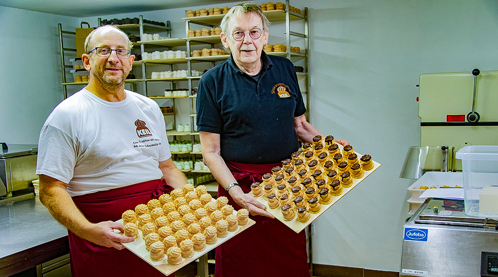 Das Backen sei für den Quereinsteiger schon immer sein Traumberuf gewesen. Den Namen „Keil“ und das Logo will Schneidmüller-Hanl als Markenzeichen beibehalten. „Jeder Schokokuss ist mit Liebe von Hand gespritzt“, sagt Schneidmüller-Hanl der die Kunst bei seinem Vorgänger abgeschaut hat. „Er hat Talent“, bestätigt Wolfgang Keil, der mit einem lachenden und weinenden Auge das Zepter an seinen Nachfolger übergibt, der die Firma mit den Rezepten der Verkaufsleiterin und allen Fahrzeugen übernommen hat.