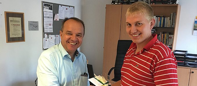 Das gesamte FCN-Team ist natürlich mächtig stolz auf die meisterliche Erfolgsgeschichte von Tobias Pehkonen: FCN-Geschäftsführer Bernhard Klöppner gratulierte dem 24-Jährigen zum neuen Titel „Geprüfter Industriemeister - Fachrichtung Aufbereitungs- und Verfahrenstechnik“ und überreichte ein Präsent. „Es ist ein großer Gewinn, einen so motivierten Mitarbeiter in unserem Team zu wissen. Wir freuen uns, dass wir jetzt einen Meister haben, der unsere Mannschaft mit diesem fachspezifischen Wissen bereichert“, lobte er den engagierten Mitarbeiter, der ja bereits seine Lehre zum „Aufbereitungs- und Verfahrenstechniker Betonerzeugnisse“ bei FCN mit Bravour gemeistert hatte. „Gerade in Zeiten des Fachkräftemangels ist qualifizierter Nachwuchs wichtiger denn je. Bei Tobias Pehkonen hat sich schon sehr früh gezeigt, dass er sich den für ihn idealen Beruf ausgesucht hat – seine Wissbegierde, sein Engagement und seine Faszination für den Beton zahlen sich aus“, betonte der FCN-Geschäftsführer. +++ pm/sb