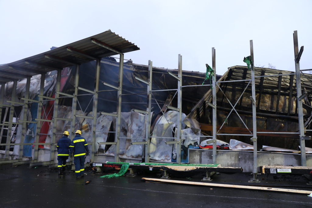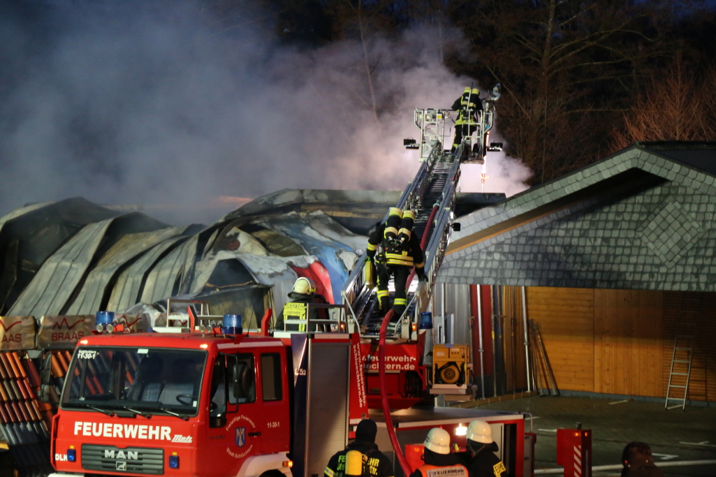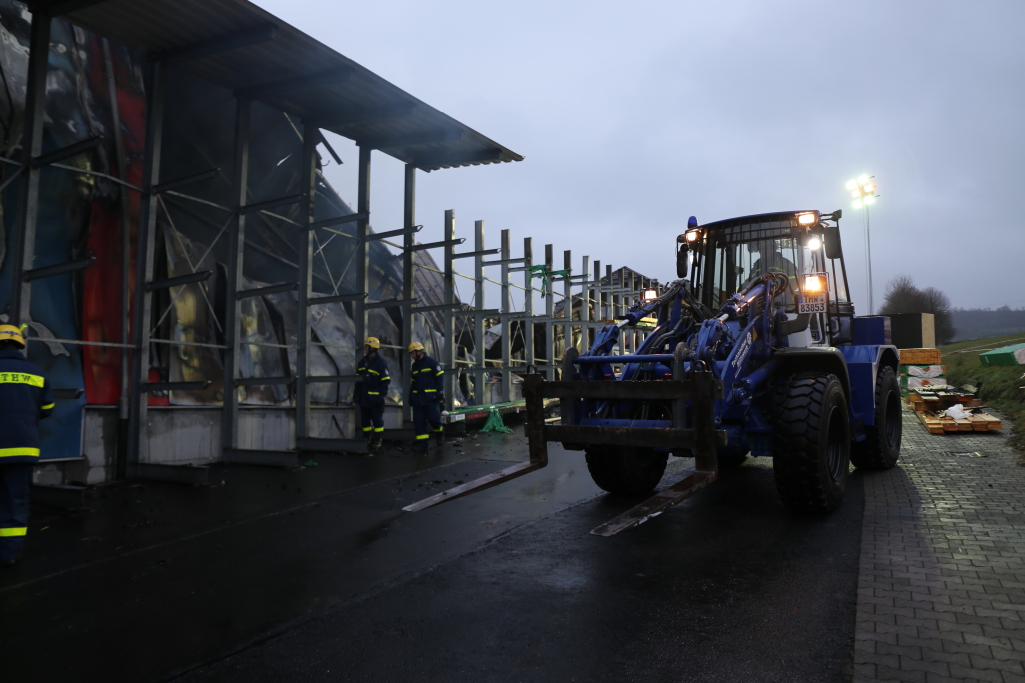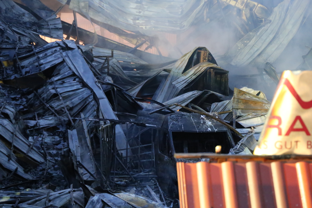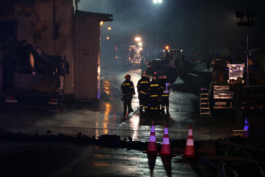[/dropshadowbox]Neben der Produktionshalle wurden auch mehrere Firmenfahrzeuge weitgehend zerstört. Die Kriminalpolizei hat noch in der Nacht erste Ermittlungen aufgenommen. Auch die Staatsanwaltschaft Hanau wurde bereits informiert. Zur Ursache des Brandes liegen derzeit noch keine Erkenntnisse vor. Wann die Brandermittler mit der unmittelbaren Spurensuche in der Halle beginnen können, steht noch nicht fest. +++
